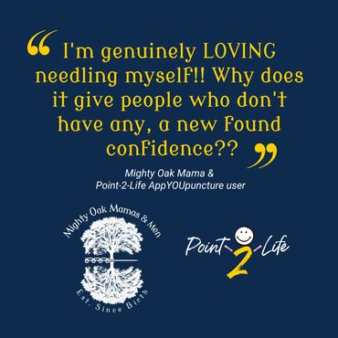 Through the Mighty Oak Mamas and Men online group I will support you from those early stages of learning to needle or do acupressure on yourself, through to when you're more experienced and onto the higher level courses. With a thriving online community and regular group zoom sessions that I run you will easily be able to practise the art of self-needling and acupressure and finally just BE YOU!